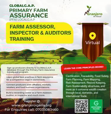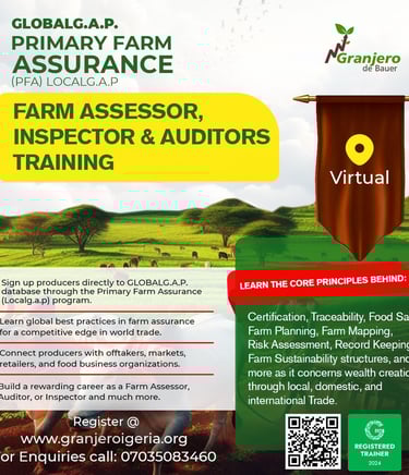 Become an Assessor, Inspector or Auditor with Granjero de Bauer, an Affiliate with GLOBALG.A.P under the Localg.a.p Primary farm Assurance programme.